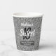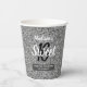 Décorez pour une jeune fille de seize ans avec Sweet 16 Parties scintillant noire en argent Cups personnalisées en papier.   Chaque tasse est conçue avec l'arrière - plan en faux argent moderne et "doux 16" sur le centre en lettres blanches et noires. Le texte a "merci de nous avoir aidés à célébrer" et vous pouvez customiser les mots si vous le souhaitez en cliquant sur l'option personnaliser le modèle.  Personnalisé avec nom pour rendre la fête extra spéciale.