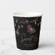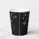 Sweet 16 Rose Gold Butterfly Chic Modern Birthday Paper Cups dispose d'élégants papillons roses en or avec des lampes à cordes sur un arrière - plan noir avec Sweet 16 en élégant script de calligraphie avec "Happy Birthday" et personnalisée avec votre nom personnalisé ci-dessous. Personnalisez en modifiant le texte dans les zones de texte. Conçu pour vous par ©Evco Studio www.zazzle.com/store/evcostudio