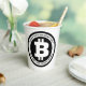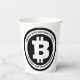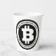Célébrez avec style avec des fournitures de fête sur mesure. Ces tasses en papier sont prêtes à être customisées avec vos propres messages avec un message en haut et un en bas. Au centre est un symbole Bitcoin en noir contre un arrière - plan blanc. La conception apparaît de part et d'autre de la tasse.