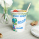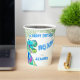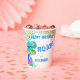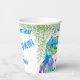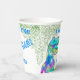 Dinosaure coloré fête d'anniversaire tasses de papier personnalisé pour tout âge. Dino T-Rex amusant avec aquarelle feuillage de jungle jurassique, avec un Happy Birthday Roar personnalisé. Les mots ‘A Happy Birthday Roar for’ avec le nom d’un enfant personnalisé. Une typographie bleue moderne et amusante, facile à personnaliser avec le modèle. OEuvre originale de l'artiste Catherine Sweetman
