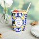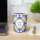 Talavera azulejo bleu carreaux vintage Mexicaine douche nuptiale monogramme imprimé tasses modèle, Méditerranéen Italien bleu carreaux bleu Maiolica tuiles grecques motif douche nuptiale personnalisation table décoration