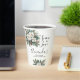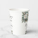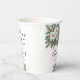Tasses à café pour douche de mariée hivernale Snow In Love avec feuilles vertes hivernales, fleurs blanches et un peu de neige pour capturer le thème hivernal
