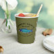 Juste à côté de la barre, cette tasse en papier est équipée d'un Saumon Sockeye bleu avec le texte "Cyanotic Saumon Bar & Grill Kenai, Alaska" et "Combat Fishing Rest And Relaxation. Ajoutez votre propre texte supplémentaire. La pêche au saumon est très populaire, trop populaire en Alaska. Imaginez des centaines de pêcheurs, à peu près côte à côte, longeant les deux rives d'un ruisseau essayant d'éviter de traverser les lignes avec tout le monde dans l'espoir d'atterrir un grand saumon. C'est de la pêche au combat. Après un jour de cela, prenez un peu de R&R au mythique Saumon cyanotique de Kenai. Des contes de pêche y ont raconté...un peu vrai.