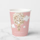 Step into a world of whimsy and anticipation with our Teddy Bear Balloons Girl Baby Shower Paper Cups, a heart warming celebration where dreams take flight amidst a backdrop of soft pastel hues and retro charm. This enchanting design features a darling beige bear soaring in a basket, lifted by a magnificent air balloon crafted from an array of small beige and gold balls. Each detail is lovingly crafted, capturing the essence of joy and excitement as the little one's arrival draws near. The soft pink background envelops the scene with a gentle warmth, while the retro font adds a touch of nostalgic elegance to the overall composition. Most lettering is editable - click the "Customize Further" button to edit. Matching items available.