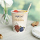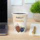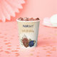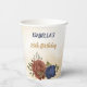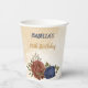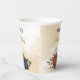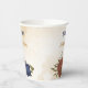 Magnifique coupe en papier de ton de terre pour fêtes automnales avec des fleurs terracotta et bleu marine et des feuilles vertes .