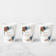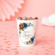 Élégants gobelets en papier pour shower de mariée avec un thème floral terreux bleu marine, terre cuite et orange, représentant un élégant bouquet de roses, de pivoines bleu marine et de feuilles d'eucalyptus vertes. N'hésitez pas à me contacter pour toute aide de personnalisation ou si vous avez besoin d'un autre produit avec ce design.