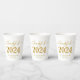 Fourniture élégante et élégante de fête de grâce personnalisée! Célébrez l'action de grâce avec style avec ces tasses de papier tendance fête. Caractéristiques de design "reconnaissante pour 2024" en écriture d'or typographie sur un arrière - plan blanc propre. Personnalisez ce produit en ajoutant le nom de famille ou votre texte personnalisé. Facile à customiser. BON THANKSGIVING !
