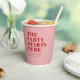 THE PARTY STARTS HERE! Custpm Modern Bold Font Wedding Paper Cups with your Names & Date.