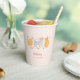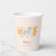 Coupe en papier de fête à thème chat mignon avec illustration de chats avec casquettes de fête et fleurs roses.