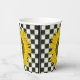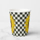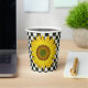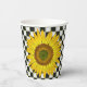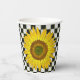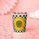 Coupe en papier de qualité supérieure avec un gigantesque tournesol jaune vif et gai contre un arrière - plan de quilt en damier noir et blanc imitation couture. Idéal pour les loisirs intérieurs ou extérieurs et pour toute occasion ! Reportez-vous à la section sur la coordination des produits.
