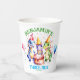 Trois dinosaures rex mignonette de fête d'anniversaire vaisselle personnalisée tasses de papier, trois dinosaures mignons en casquettes de fête avec un confetti de gâteau d'anniversaire et ballons tomber autour pour les petits enfants plus petits dinosaures fête d'anniversaire thème dinosaure.