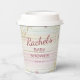 Tropical Beach Seashell Modern Boho Baby shower Chic Modern Thé Café Boissons Party Paper Cups présente un joli design sur la plage dans des couleurs pastel avec coquillages et votre texte personnalisé dans élégante typographie de script de calligraphie rose. Parfait pour les fournitures de baby shower fête. Conçu par Evco Studio www.zazzle.com/store/evcostudio