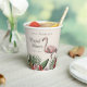 Ces élégantes gobelets en papier pour la douche de la mariée présentent des illustrations thématiques de flamants roses tropicaux dessinés à la main à l'encre noire, mettant en vedette des flamants roses, des fleurs d'hibiscus et de jasmin, des feuilles tropicales, un ananas et une boisson tropicale. Fond ivoire élégant.