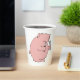 Un porc affamé tenant un couteau et une fourchette. Cette conception semble vraiment efficace sur ces tasses de papier