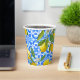 Ce gobelet en papier aquarelle sur le thème des citrons et de la Méditerranée présente un motif de carreaux méditerranéens en bleu et blanc.La couleur bleu poussiéreux, jaune, bleu marine et blanc est une palette de couleurs parfaite pour une décoration de fête de mariage élégante et formelle.