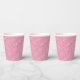 Tulipes et papillons motifs roses tasses en papier. Le design présente des tulipes rose, jaune et orange sur un arrière - plan rose. Des papillons roses et jaunes se bousculent autour des tulipes, rehaussant l'esthétique joyeuse avec une touche fantaisiste !