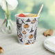 Un motif d'Halloween fantaisiste de la collection de baby showers "A Baby is Brewing", illustré à l'encre noire. Ces tasses gothiques sont ornées d'un motif avec une carriole antique pour bébé, de corneille noire et de citrouilles sur un arrière - plan gris et élégant.