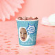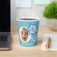 Des tasses personnalisées amusantes pour le premier anniversaire, avec des ballons de mots comiques et des étoiles bleues simples. Pas besoin de couper la photo en cercle. Vous ne remplacez votre photo de bébé que par un exemple. Vous avez aussi glissé un message plein d'esprit dans la bulle de la parole ! Faisons de la fête d’anniversaire de votre bébé une fête spéciale avec vos idées! Il sera parfait pour un cadeau de premier anniversaire de bébé garçon et ravira votre famille et vos amis.