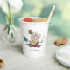 Un homme courant avec du café et un morceau de papier. Cette conception semble vraiment efficace sur ces tasses de papier