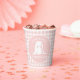 Des tasses de fête d'anniversaire de premier anniversaire de Bunny rose en vichy printemps.