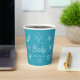 This cute 'Sea You Soon Baby' boy's baby shower paper cup features a blue background with hand-drawn sunshine over waves, a whale tail, a school of fish, seashells, coral, and starfish—all in white. Personalize it for your needs. You can find matching products at my store.