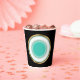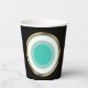 Le design original de Leslie Sigal Javorek qui est présenté sur ces gobelets imite l'aspect d'une porcelaine fine avec un centre Aqua qui s'estompe graduellement à une fin blanche presque translucide à un anneau noir de cheveux, une large bordure en or brossé et une jante noire. Elégant style Art déco / Streamline. Découvrez les produits de coordination de HoMeArts !