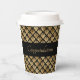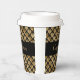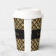 Tasses de fête en papier avec un motif spectaculaire et élégant caractéristiques de style Art Déco ventilateurs géométriques sur arrière - plan noir avec bande de texte centrale personnalisable