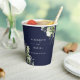 Elégante tasse de papier mariage bleu marine fleurie personnalisée avec vos noms et date spéciale mariage. Conçu par Thisisnotme©
