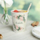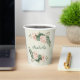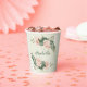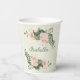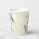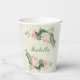 Jolie tasse en papier romantique avec des fleurs vert sauge et rose blush et quelques feuilles jolies .