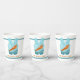 Ajoutez une touche personnalisée à votre prochaine fête avec ces coupes de soirée à thème de ski nautique. Ils présentent une illustration d'un skieur d'eau orange dressé contre l'eau bleu turquoise et bleu clair. Le graphique est en forme de gilet de sauvetage. Votre message personnalisé apparaît sous l'illustration en lettres orange.