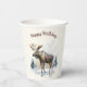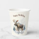 Coupes de papier d'anniversaire mignonnes avec une aquarelle d'orignal. Vous pouvez customiser la tasse en ajoutant un nom.