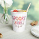 Ce design d'Halloween amusant et festif comprend l'expression "Vibes Éffrayantes" dans une police ludique et dégoulinante qui donne au texte un effet d'élégance et d'étrangeté. Les mots sont remplis de douces teintes pastel de rose, d'orange, de violet et de pêche, ajoutant une touche légère et fantaisiste au thème éffrayant. Sous le texte, une simple illustration en toile d'araignée d'une couleur brune douce ajoute une touche d'Halloween classique, en liant le design ensemble. La combinaison des couleurs pastel et des éléments éffrayants crée un contraste unique, à la fois mignon et un peu déplaisant, parfait pour Halloween