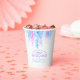 Fleurs de type vigne loose botanique aquarelle peinture art mariage tasses en papier. Belle aquarelle florale lâche design idéal pour des événements mariage ou d'anniversaire dans de jolies nuances de bleu, violet et rose. © Original watercolor art and design par Sarah Trett www.sarahtrett.com pour www.mylittleedenweddings.com