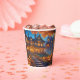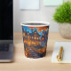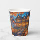 Cette tasse à papier présente un manoir éffrayant dans la forêt avec des fenêtres éclairées entourées de nombreux citrouilles. Parfait pour votre fête d'Halloween ! Texte personnalisé.