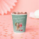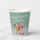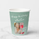 Verre rouge moderne Aquarelle 70e anniversaire de fête Coupes de papier photo. 70e anniversaire tasses en papier avec un verre de vin rouge aquarelle et des raisins. Le texte est un script blanc et est entièrement personnalisable - personnalisez-le avec votre nom, âge et photo.