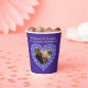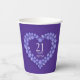Personnalisez ces gobelets de papier de fête du 21e anniversaire de mariage violet bling avec vos propres noms de couples du 21e anniversaire, photo, date et années de mariage. D'autres articles correspondants sont disponibles. Violite violet effet coeur art graphique et design par Sarah Trett pour www.mylittleeden.com et www.mylittleedenweddings.com