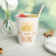 Prévoyez-vous le baby shower d'un garçon ? Cette tasse en papier baby shower sur le thème du soleil est décorée d'une aquarelle soleil souriant et typographie élégante sur un arrière - plan crème douce. Aquarelle originale © Michele Davies.