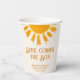 Prévoyez-vous le baby shower d'un garçon ? Cette mignonne tasse en papier baby shower est décorée d'un soleil d'aquarelle jaune et dit "Here Comes The Son" dans la typographie rétro élégante sur un arrière - plan crème douce. Facile à personnaliser. Utilisez l'outil de conception pour modifier la taille, le style ou la couleur du texte. Parce que nous créons notre oeuvre, vous ne trouverez pas cette image exacte d'autres designers. Aquarelle originale © Michele Davies.