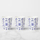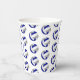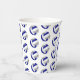 Ces tasses de papier de fête d'anniversaire sur le thème du volley-ball comportent plusieurs petites boules de volley bleues, grises et blanches disposées en simple motif à goutte - le texte sur un graphique en cercle blanc peut être customisé, actuellement le nombre 10 pour représenter l'âge d'un enfant encerclé par les mots "Joyeux anniversaire" - par katz_d_zynes