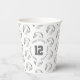 Ces volleyball sur le thème de fête d'anniversaire tasses de papier disposent de multiples petites volleyballs en argent stylisé / gris & blanc arrangés dans un simple motif goutte - texte sur un cercle blanc graphique peut être customisé, actuellement le numéro 12 pour représenter l'âge d'un enfant encerclé par les mots, "Joyeux anniversaire" - par katz_d_zynes