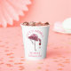 Jolis gobelets en papier personnalisés flamant rose pour enterrement de vie de jeune fille. Ajoutez votre nom ou votre message en cliquant sur le bouton "Personnaliser" et organisez le meilleur week-end entre filles avant de dire "oui".