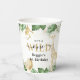 Élégant safari neutre sur le thème de la fête de premier anniversaire tasses de papier, avec la végétation tropicale, faux animaux de la jungle d'or (lion, girafe et singe), des confettis d'or et un modèle moderne de célébration d'anniversaire qui est facile à customiser. Décor de fête dans notre collection "Wild Jungle".