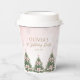 Celebrate your little one’s milestone with these Winter Onederland Pink Bow Pine Trees 1st Birthday Paper Cups featuring snowflakes and festive Christmas trees with pink bows. Easily personalize all text and photos for a magical winter birthday celebration.