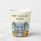 These sweet woodland animals birthday paper cups feature a charming storybook illustration of an elephant, deer, and lion, creating a warm and playful forest party look. The soft colors and friendly characters are perfect for toddler and kids birthday celebrations.