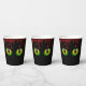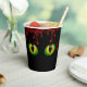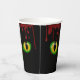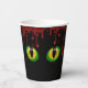 Gobelets en papier pour votre célébration d'Halloween. Grands yeux effrayants verts et jaunes sur fond noir avec du sang qui coule.