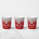 Cette tasse de papier graduation présente des zigzags noirs et blancs classiques comme l'arrière - plan accentué par une couleur dégradé rouge foncé. Cette conception est accentuée avec un mortier au-dessus du texte.