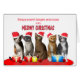 Une carte de Noël drôle et mignonne avec 5 chats assis en rang portant des chapeaux de Père Noël. Les mots Meowy Christmas sont au-dessus des chats.N'importe quel amoureux des chats va adorer! Une carte de Noël pour votre Godgirl et votre mari.