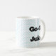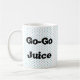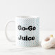 Avez-vous besoin de cette tasse de café pour commencer votre journée ? Je le sais ! Dans cette tasse amusante qui a un dicton idiot pour le café comme jus de gogo. Texte placé sur un pois bleu arrière - plan c'est un gobelet amusant et heureux.