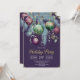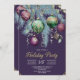 Elegant Christmas holiday party invitation featuring pine branches, green and gold baubles, and ribbons on a dark green background. Chic lettering showcases your event details—perfect for festive gatherings. Matching items available in our collection.