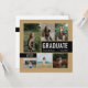 La carte de faire-part de remise de diplômes élégante et l'invitation de la fête comportent six photos senior avec "GRADUATE" comme grand point focal. Personnalisez le texte personnalisé moderne avec le nom de votre élève, l'école et l'année de classe. Cette carte recto verso comprend le libellé de l'invitation de la partie de graduation au verso. Customisez les couleurs du cadre d'image et des boîtes à l'avant et les boîtes à l'arrière pour correspondre aux couleurs de votre école ou coordonner avec la photographie. Disponible dans les combinaisons de couleurs les plus populaires et les plus courantes de l'école - vert/jaune, rouge/jaune, rouge/or, bleu/jaune, bleu/jaune, bleu/or, noir/or, noir/jaune, violet/jaune, rouge/argent et rouge/noir. Produits correspondants et autres couleurs disponibles.